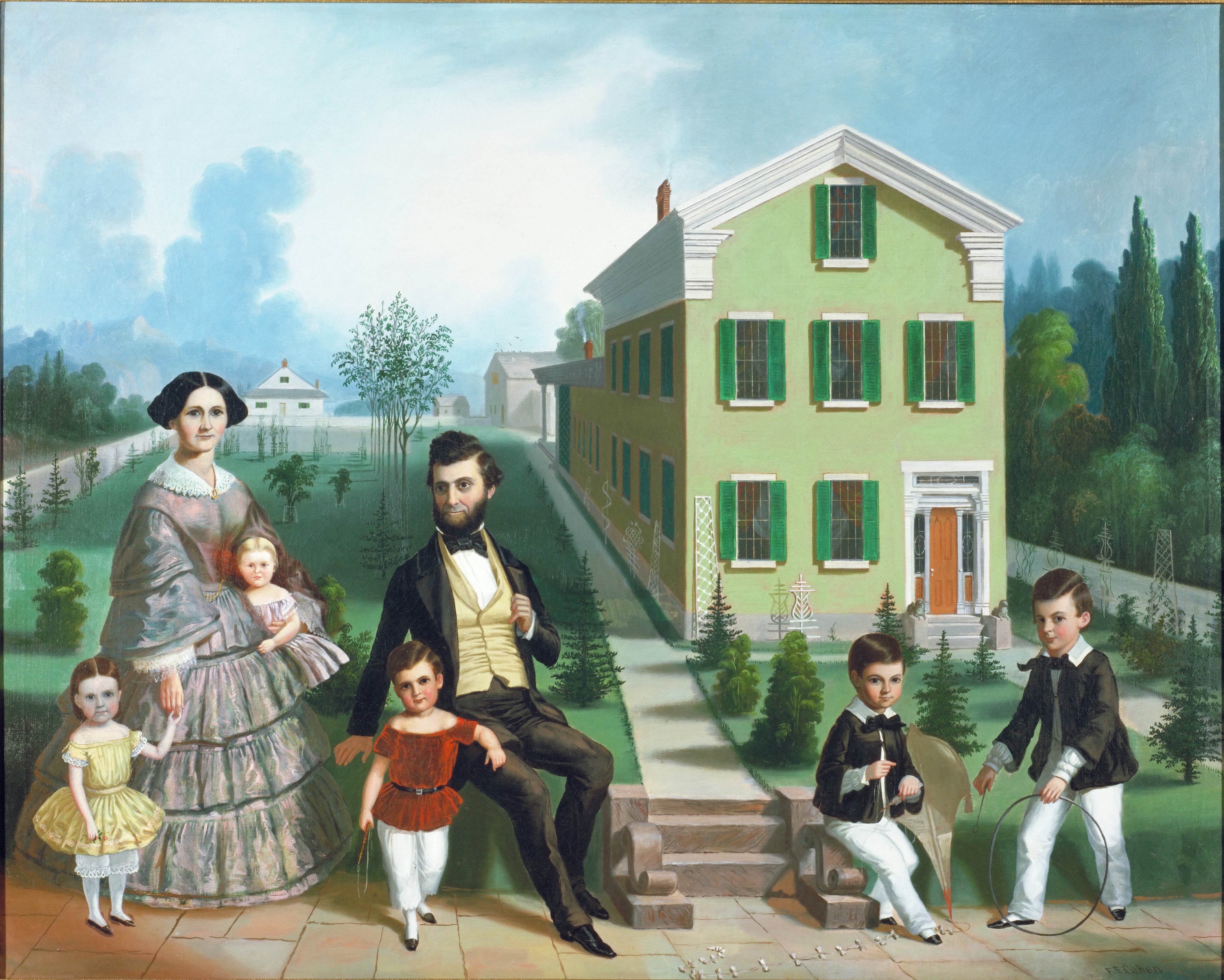 They selected a small number of works that would lend themselves to conversation, including a 19th-century landscape-style photo of the Yosemite Valley by Carleton Watkins and Andy Warhol’s 1986 pop art rendering of Sitting Bull. Of particular interest locally, however, was an 1857 painting by Frederick E. Cohen, Bentley Simons Runyan Family, depicting a well-appointed family from Mansfield, Ohio, standing in front of their equally luxurious house on a vast swath of land.