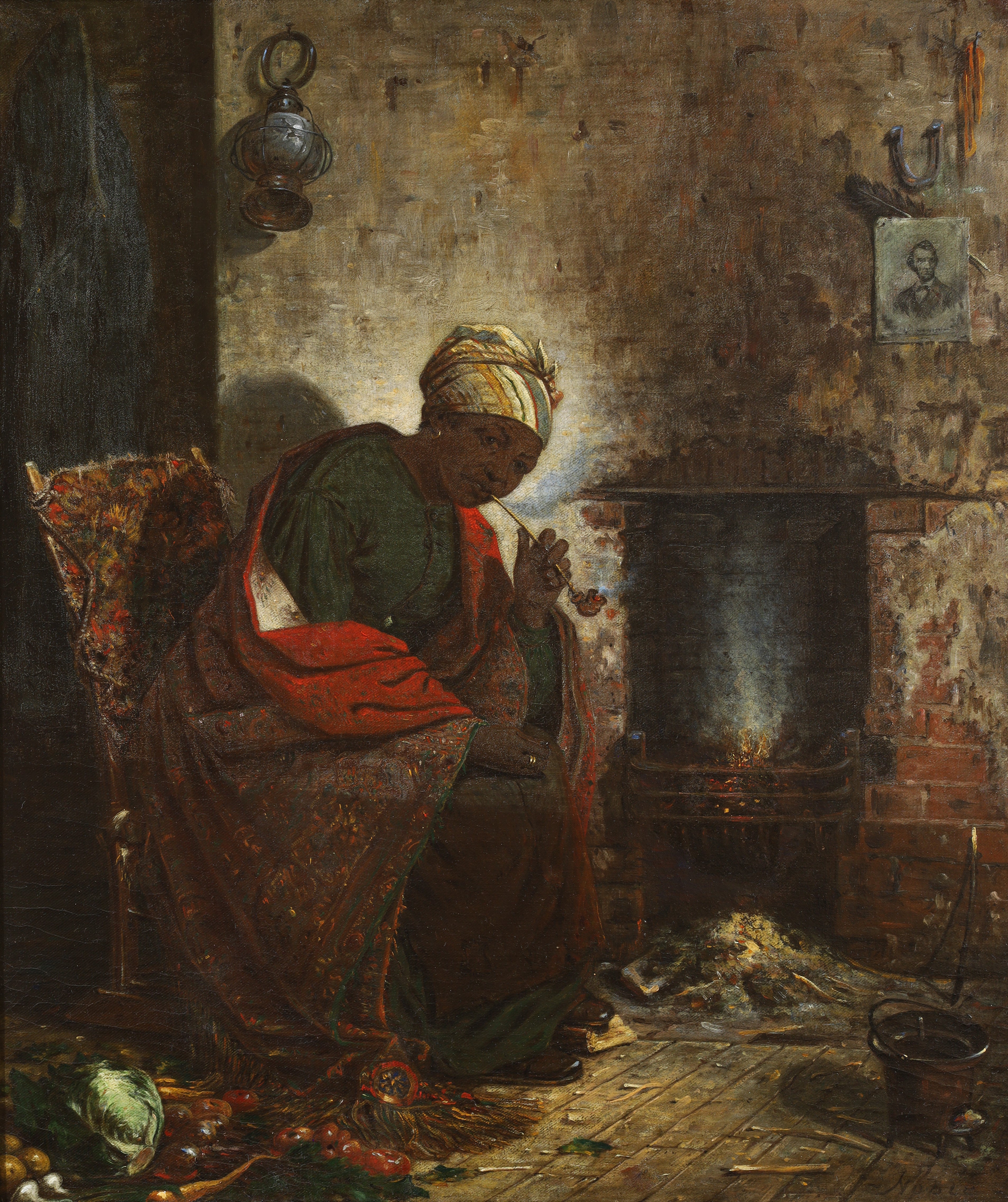 Following the Civil War (1861–65), American politicians promoted a variety of fruit growing projects to unite farmers across the country. These efforts drew on a rhetoric of national expansion that advocated the “civilizing” of stolen Indigenous land by clearing it for agriculture. Roesen’s still life tacitly endorses this agenda by showcasing the bounty of American soil and the wealth generated by its cultivation.