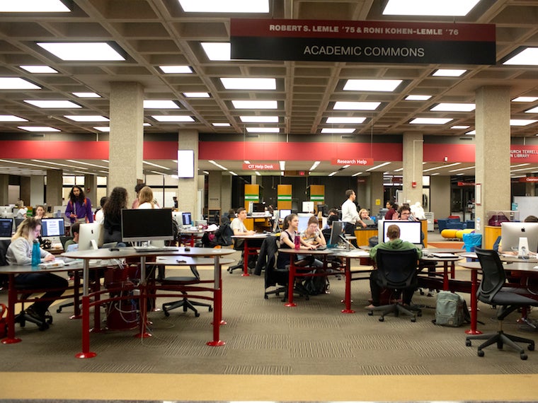 The Academic Commons on the main floor of Seeley G. Mudd Center is a hub for sharing research and information. It’s also the place to get computer support, and access technology, reference, and learning assistance. Its major features include 29 workstations (for individual or group study), printers, scanners, an electronic classroom, and multimedia stations with video editing.