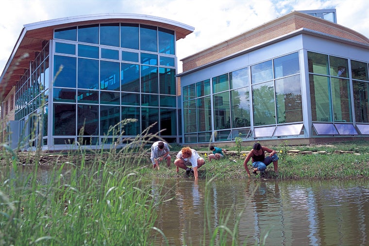 The college’s Adam Joseph Lewis Center for Environmental Studies (AJLC) has served as a showcase for green design. The building houses Oberlin’s nationally recognized Environmental Studies Program. Its design-oriented curriculum helps students understand the causes and consequences of the environmental predicaments and develop the creative problem-solving skills necessary to create a more sustainable relationship between humans and the rest of the natural world.
