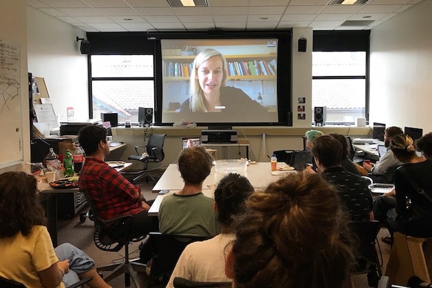 Lauren Cornell ’99, Director of the Graduate Program and Chief Curator at the Center for Curatorial Studies at Bard College, visits the Intro to New Media course to discuss curatorial challenges in relation to technology.