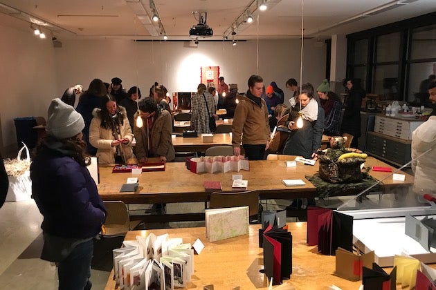 Students in the Book Arts courses display their work during the night of the Art Walk, when all artwork from the preceding semester is on view.
