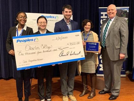 For the second year in a row, Oberlin College was awarded first place in the Eighth Annual Peoples Bank Undergraduate Business Case Competition. The Oberlin team surpassed 15 other schools to secure the first place honor during the competition which asked teams to prepare case studies to present for Peoples Bank senior management.