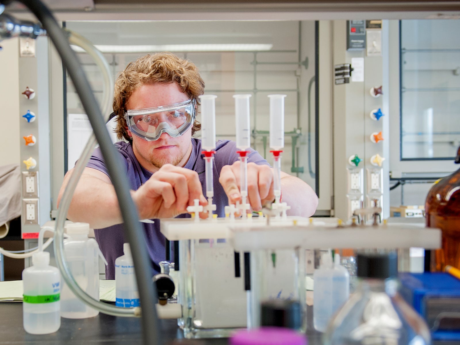Learn about the mechanisms of action of modern pesticides and debate their ethical use. Explore how your body uses the biomolecules in the foods you eat to fuel essential cellular functions. Conduct laboratory experiments that identify and quantify proteins in complex solutions like human serum using state-of-the-art instrumentation.