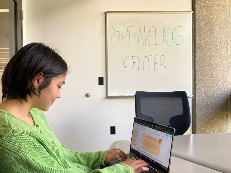 The Speaking Center also aids students who are looking to improve their speaking abilities outside of class work. Drop by the Speaking Center or schedule an online appointment to receive helpful tips for all aspects of the speaking process.