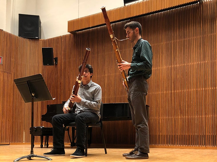 Weekly studio classes and regular master classes for the bassoon studio involve mock orchestral auditions, reinforcement of fundamentals, chamber music performances, solo recital performances, guest master classes, and many other types of performance opportunities. We encourage students to support their colleagues with positive and constructive feedback. Oberlin cultivates a learning environment in which students are open to making mistakes without consequence in larger public performances.