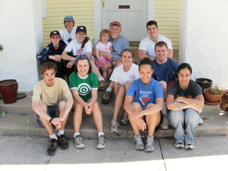 The group with a homeowner we worked with as well as our favorite volunteer family, the Maloneys.