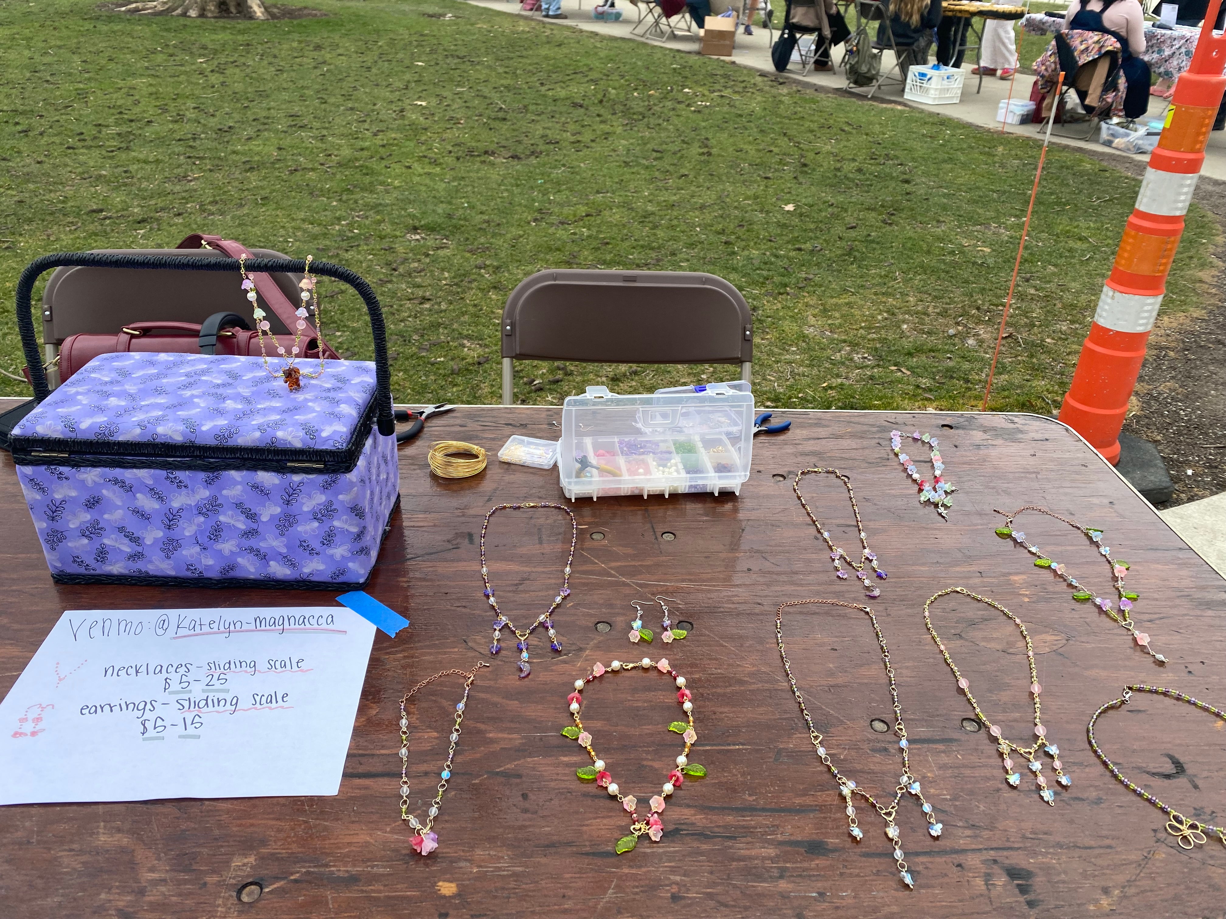 I returned to campus with an absurd amount of necklaces and earrings, and absolutely no idea what to do with them-- but wait! Small campus serendipity strikes again-- I received a mysterious email from the one and only Nova Gomez (certified campus celebrity and awesome person, whom I know from The World is Only Magic). The email was about Crafting Change, a student-run craft fair where part of all proceeds would go to the TransOhio emergency fund.