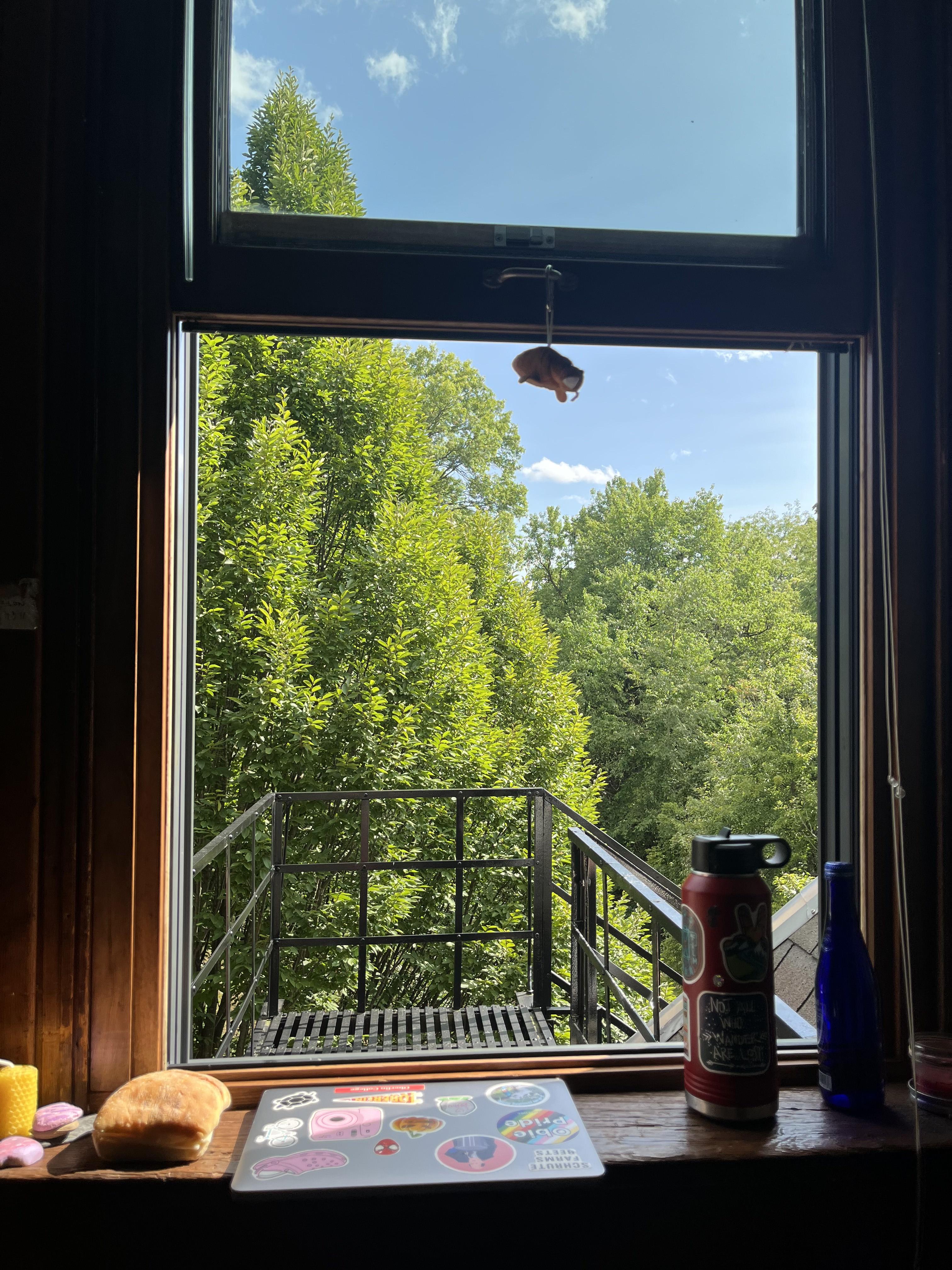 There are no words for love at first sight, but I think I could try. I had expected a small, dark room. Instead, sunlight poured through tall, wide windows facing the arboretum in great golden sheets. There was a bed pushed against the wall, a desk, and a walk-in closet with a small lightbulb. There were vinyl wood flooring and a ceiling so tall that I could jump and spin and dance in my room without ever touching anything. Past the windows, there was a fire escape that climbed down the side of the building. I leaned out of the window, breathed in the clean summer air, and gazed at the tree grove practically within arm’s reach. I decided I wouldn’t close my windows until winter.