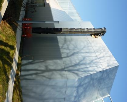 Above: the new jazz building from the rear approach. They're fixing something up on the roof, and this bucket-chain is how the rubble is disposed of. I immediately thought of Home Alone and the kinds of uses that kid would put it to.