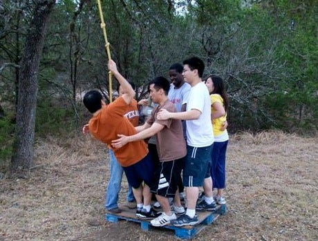 I couldn't find a picture of the cocoon, but it was a team-building activity where we boosted individual members up into the cocoon so that they could cross and all eventually end up on the other side.