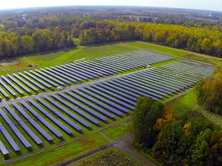 Oberlin's 2.27MW solar array, located near the north athletic fields, produces around 3 million kWh per year—about 12 percent of campus electricity usage.