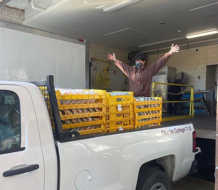 Twice a week, the RCT transports leftover prepared meals from campus dining halls and OSCA dining co-ops to OCS, which are redistributed to Lorain County residents through the OCS food pantry. If you are a food business in the City of Oberlin and want to work with us, please reach out to recycle@oberlin.edu.