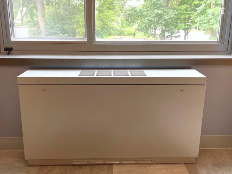 Heating buildings has historically been the college’s largest source of greenhouse gas emissions. The college has upgraded the heating infrastructure from using fossil fuels to an all-electric geothermal heat pump system to heat and cool buildings. There are two types of heating and cooling units across campus, fan coil units and radiators.