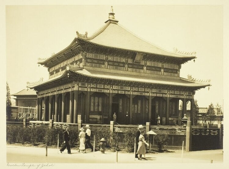 Image: Golden Temple of Jehol, 1933. Max Rigot Selling Co., Chicago. Postcard. Oberlin College Archives.