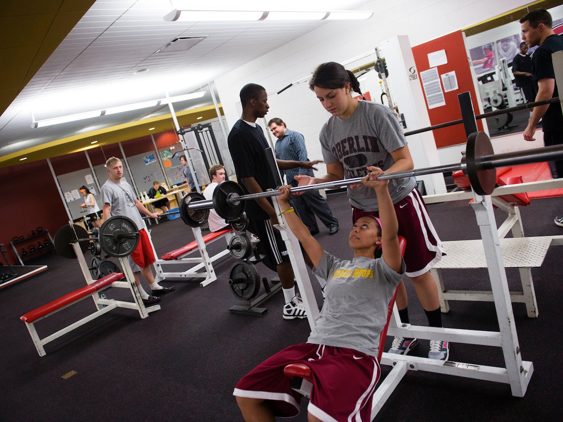 Within the Jesse Philips Physical Education Center are studios for strength training, stretching, and free weights. The weight room includes weight trees, dumbbell racks for safety, and access to lower weighted dumbbells.