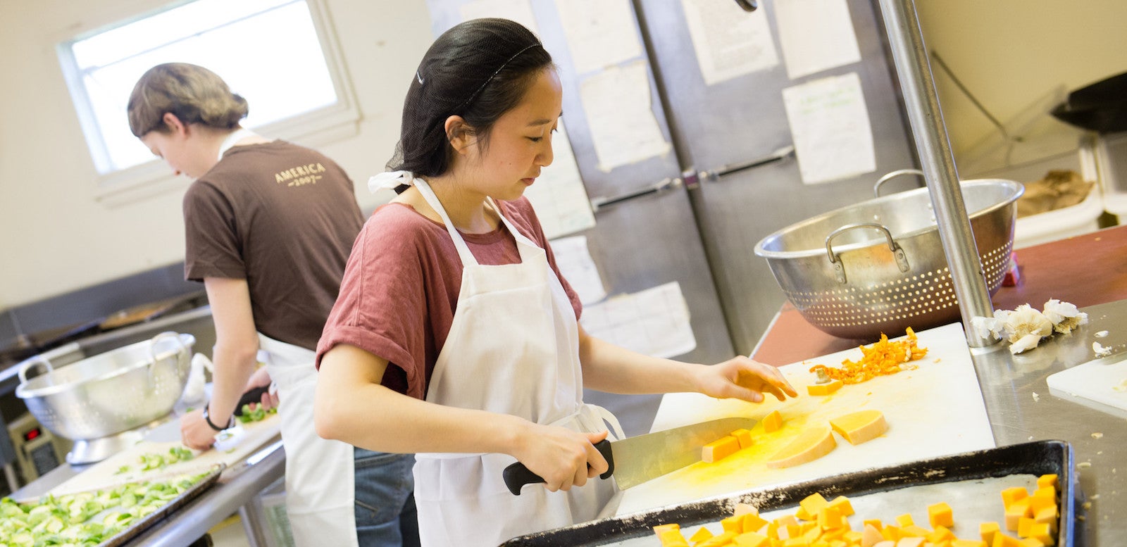 We're proud to have one of the largest, oldest dining co-op systems in the country, feeding nearly a quarter of our campus. Co-op meals are a community effort at every step, from deciding what food to buy, to making the bread, to cleaning up afterward. Members plan and prepare meals together in fully stocked, industrial kitchens. We make as much as possible from scratch (including bread and tofu), buy from local farmers, and deliver our compost to a nearby organic farm.