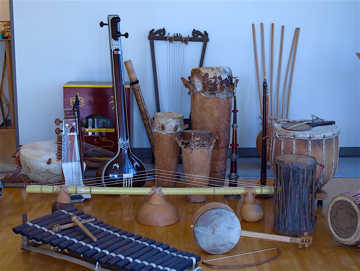 Instruments from the Roderic C. Knight Musical Instrument Collection, which features roughly 300 instruments acquired from Africa, India, China, and North America.