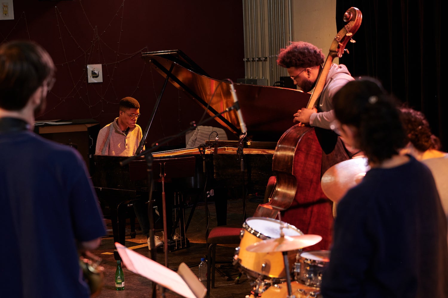 Leaps,” members of Artemis divided up and focused on their general areas of expertise. Their first priority was centered on facilitating interaction between drums and piano while accompanying soloists. Rosnes isolated our rhythm section and asked them to play several more choruses of the tune while focusing on catching each other's rhythmic interjections. Artemis’s frontline—Jensen and Glover—then shifted to our own frontline of saxophone and vocals. They provided valuable ideas for structuring a compelling solo, emphasizing melodic playing over lengthy and complex improvisation. Rosnes then set us loose to experiment with this feedback and give another complete performance of the piece. For me, this second run-through felt more deliberate, digestible, and engaging—both with my bandmates and the audience.
