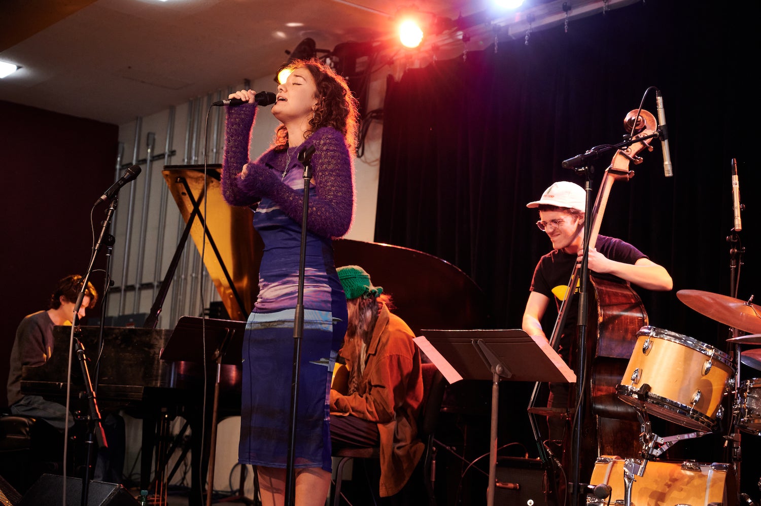 Hailing from Japan, however, Ueda described her journey from growing up playing pop music to discovering jazz while watching the anime Lupin the Third. “It was a jazz version with vibraphone and walking bass,” she said, describing the movie, “and when I heard it, I was shocked by how cool the bassline was. I was interested and started listening to jazz.”
