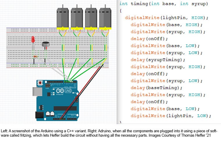 To achieve his design, Heffer decided to switch from Python coding to an Arduino language (a subset of C++ programming) because it has a better interface and a physical device that he could do preliminary testing with rather than just doing a pure coding project, he says.