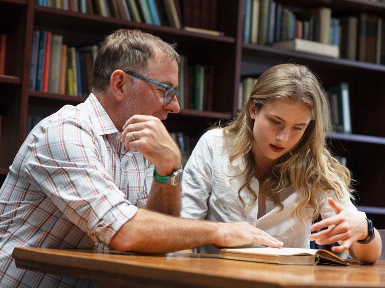 Professor of Classics Chris Trinacty and Ava Harvey '26.