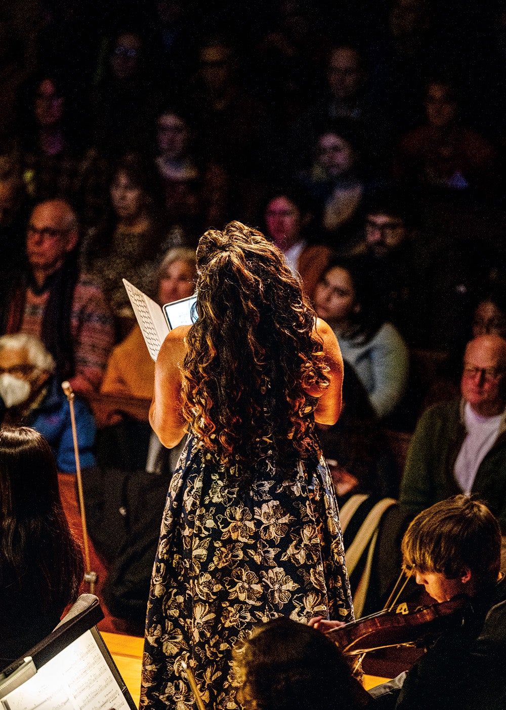 Under Finney’s vaulted ceilings, the orchestra, several star vocal soloists, and the conservatory’s vocal ensembles—including the Oberlin College Choir, Oberlin Gospel Choir, and Oberlin Musical Union—have gathered for a final run-through of Rhiannon Giddens ’00’s Pulitzer Prize-winning opera Omar. Just days later, the groups would perform two sold-out concert performances—one in Finney and another at the Maltz Performing Arts Center in Cleveland.