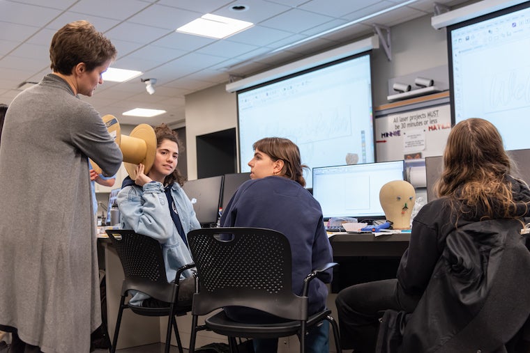 - Students in the Reimagining Maker Cultures cluster, taught by TIMARA Lecturer Abby Aresty and Associate Professor of Anthropology Amy Margaris, are visiting the Fab Lab to think about design and disability and designing their own prosthetic listening devices.