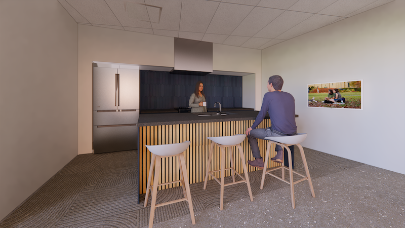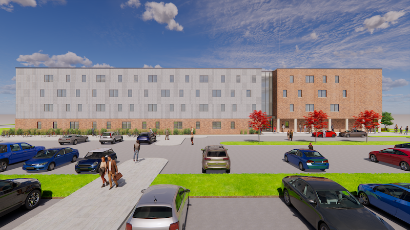 The structure will be located on Woodland Street, across from the Science Center and south of the Shanks Health and Wellness Center. It will consist of four floors and 401 beds, which will be configured primarily as climate-controlled four-person suites—the first building on campus to offer suite-style accommodations. Each suite will feature private bedrooms for each resident as well as a shared bathroom, kitchenette, and dining area.