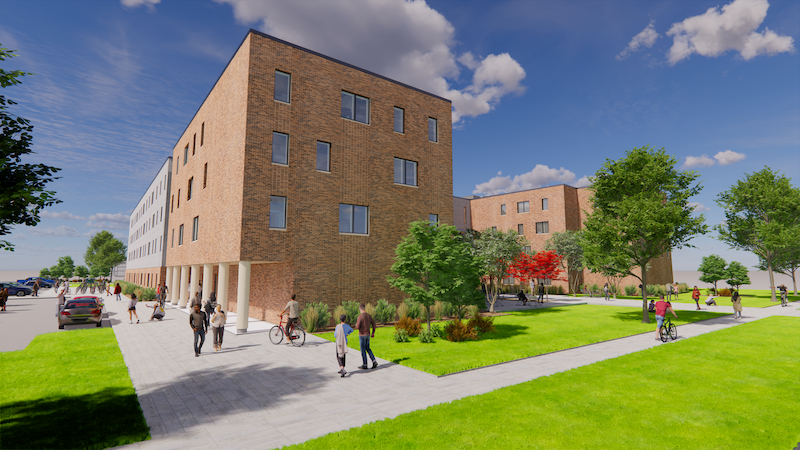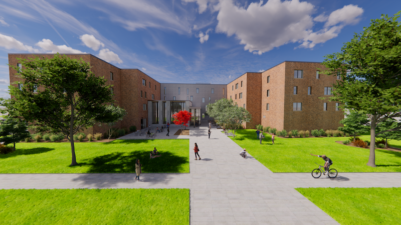 Scheduled to open in fall 2025, Oberlin's newest residence hall will be the largest on campus by far.