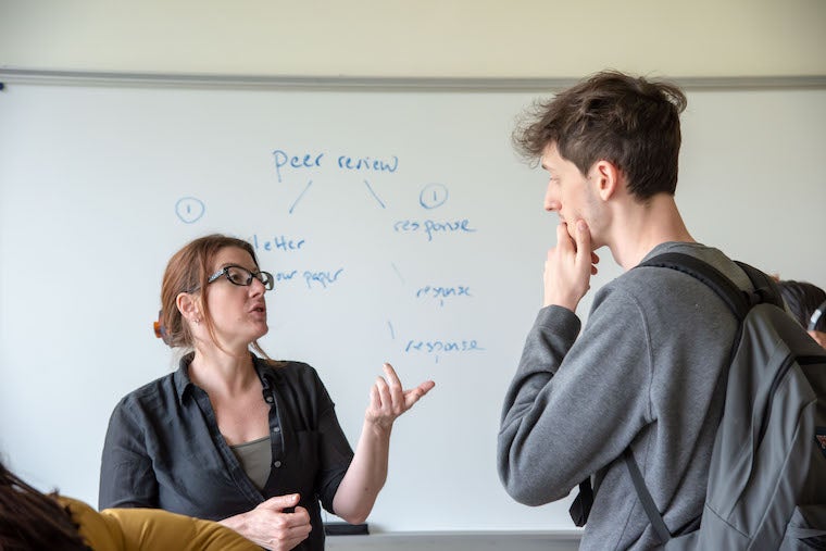 Associate Professor of Environmental Studies and Comparative American Studies Janet Fiskio with a student in her course, American Agricultures