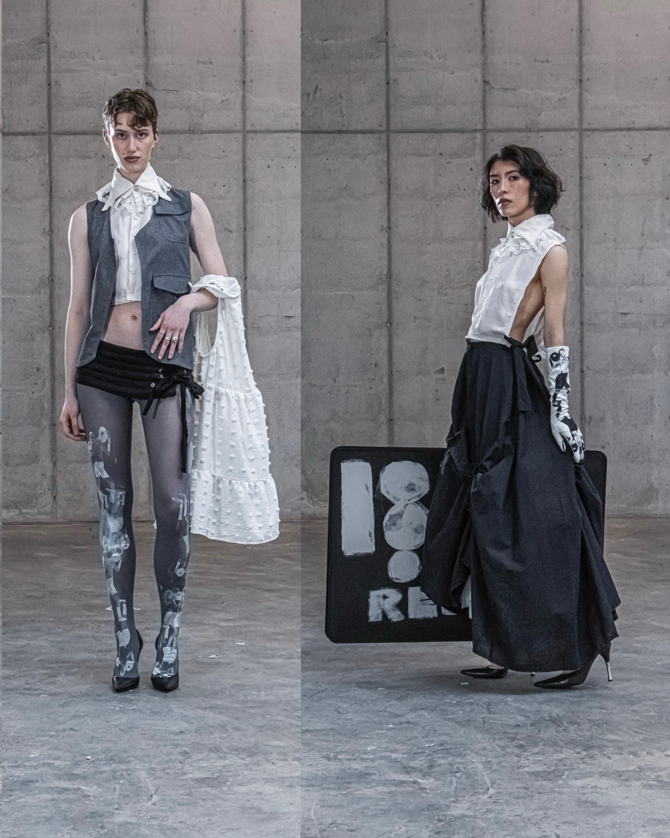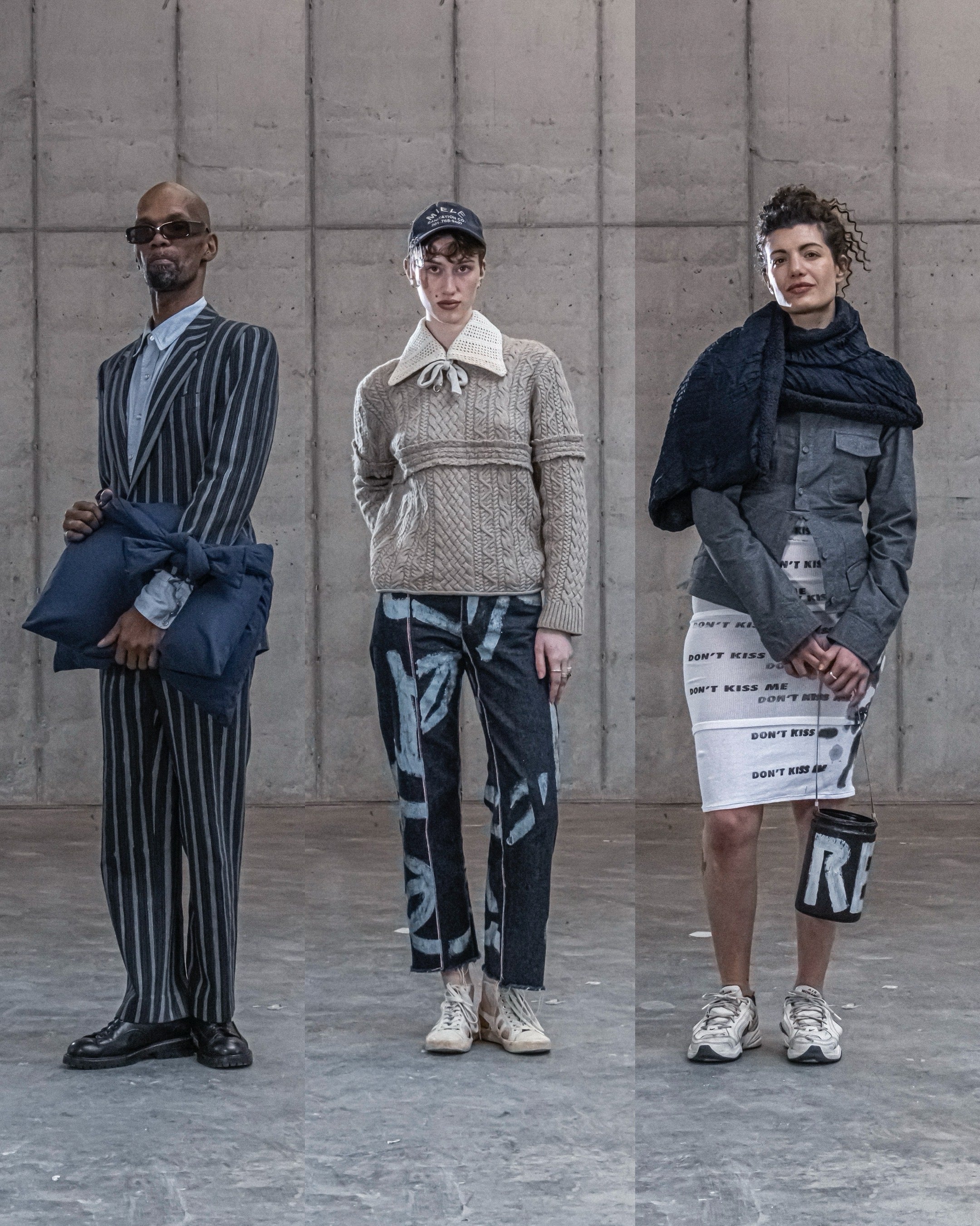 Leggett turned this individual experimentation and expression into the more developed artistic practice that sustains Official Rebrand. They wrote a senior honors thesis on the brand and held an accompanying fashion show in the Hales Gymnasium locker rooms. Not long after, Official Rebrand was recruited to participate in an independent designer fashion show—Leggett’s first time showing their work outside of Oberlin and DIY art spaces in Berlin.