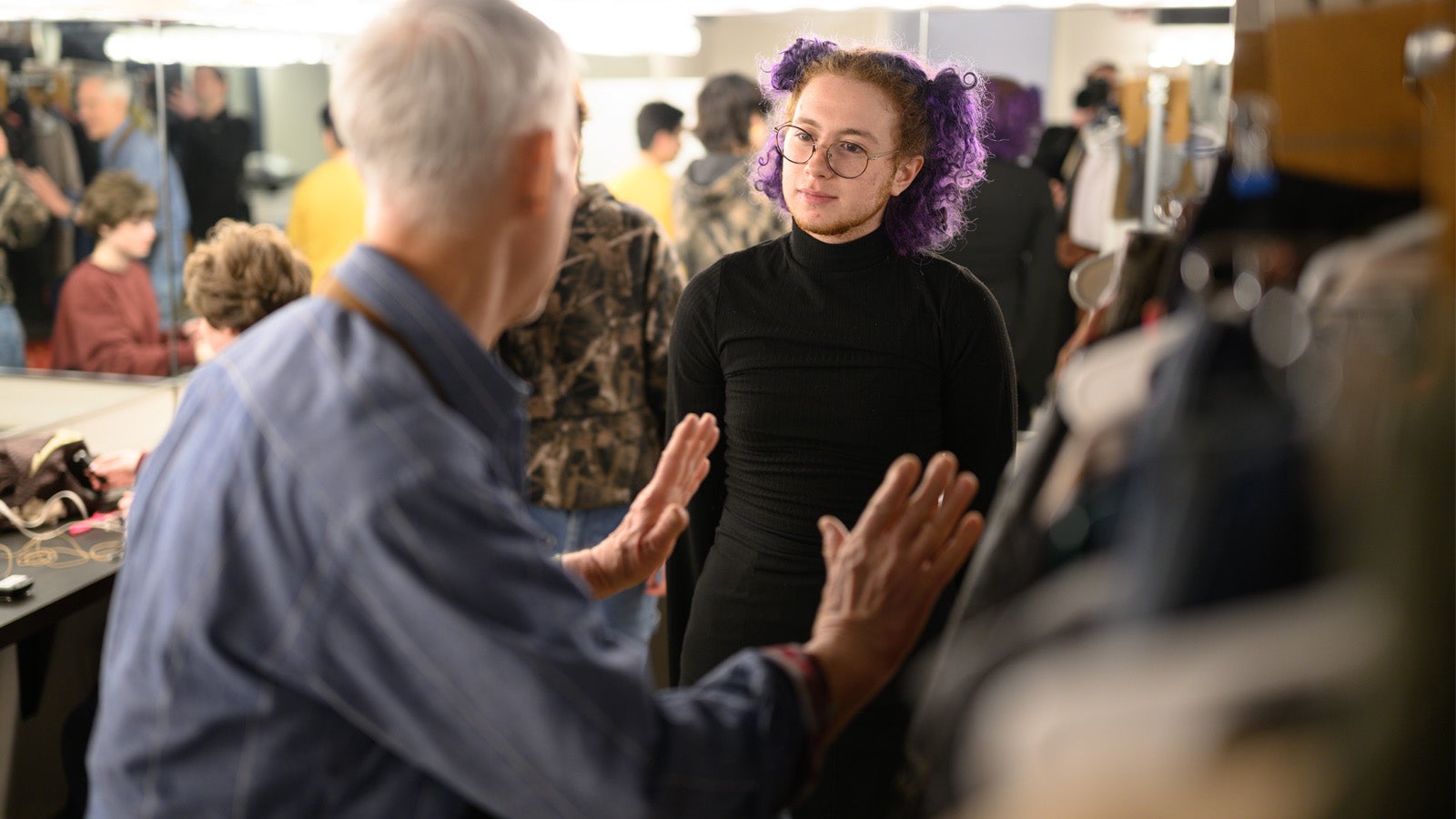 “We have talked a lot about how to break the fourth wall a little bit with an Oberlin audience specifically,” Street says, noting this is especially true in scenes where Bechdel is an undergraduate discovering her lesbian identity.