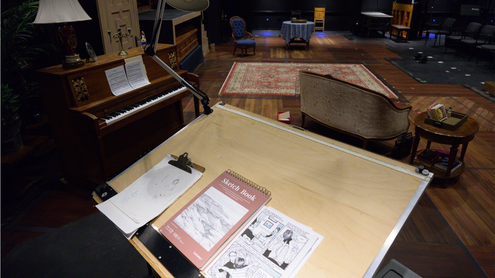 Avins says they and Flaharty also heavily referenced the Fun Home graphic novel in their design, particularly in the way that Bechdel draws her family. “We’re seeing what kind of pants they wore,” says Avins, who is interested in pursuing a career in costume design. “What are the shapes of the collars? How does Alison differentiate herself from her brothers with her clothes?”
