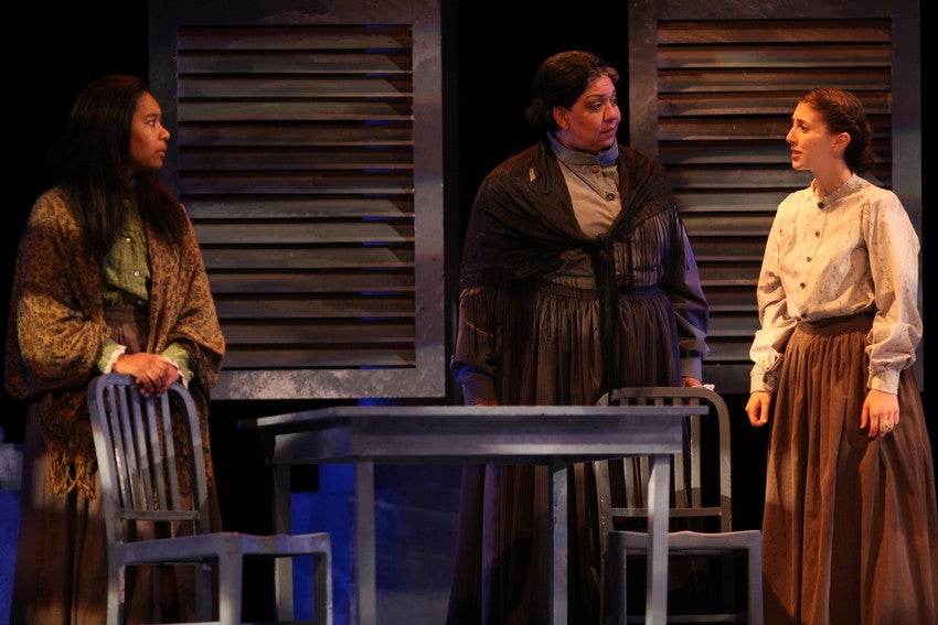 In a scene from the Oberlin Summer Theater Festival (OSTF) production of Shakespeare’s All’s Well that Ends Well, Helena speaks with Diana—the young woman her husband, Count Bertram, is attempting to seduce—and Diana’s widowed mother. The seventh OSTF season, which also includes Treasure Island and Crumbs from the Table of Joy, comes to a close Saturday, August 8. See the Events Calendar for remaining show dates and times.