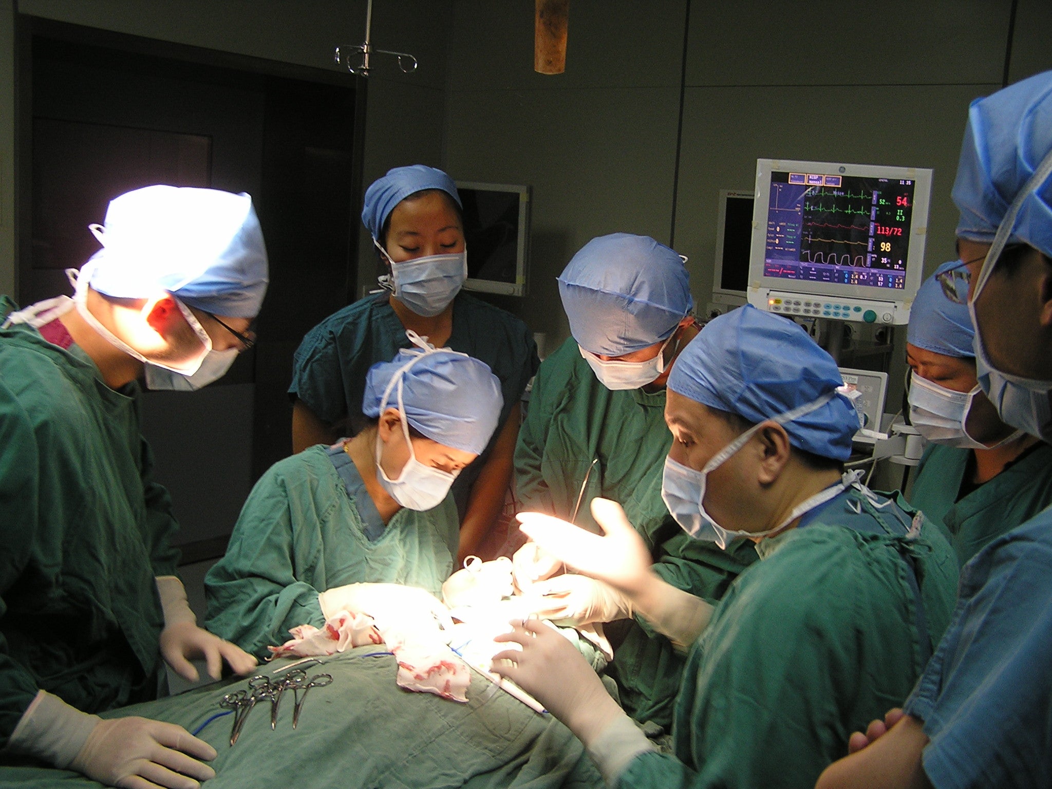 Kendra LIan (center, background), a second-year student on the pre-med track, shadowed surgeons at Fujian Medical University Hospital in Fujian, China.