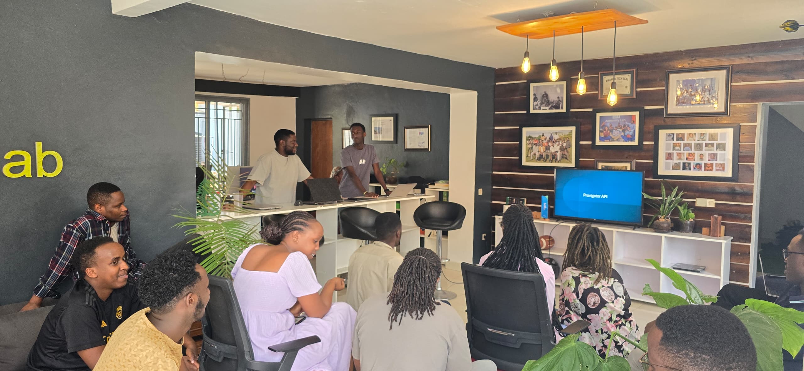 Kelig Ngabo ’27 at his internship at Awesomity Lab in Kigali, Rwanda.