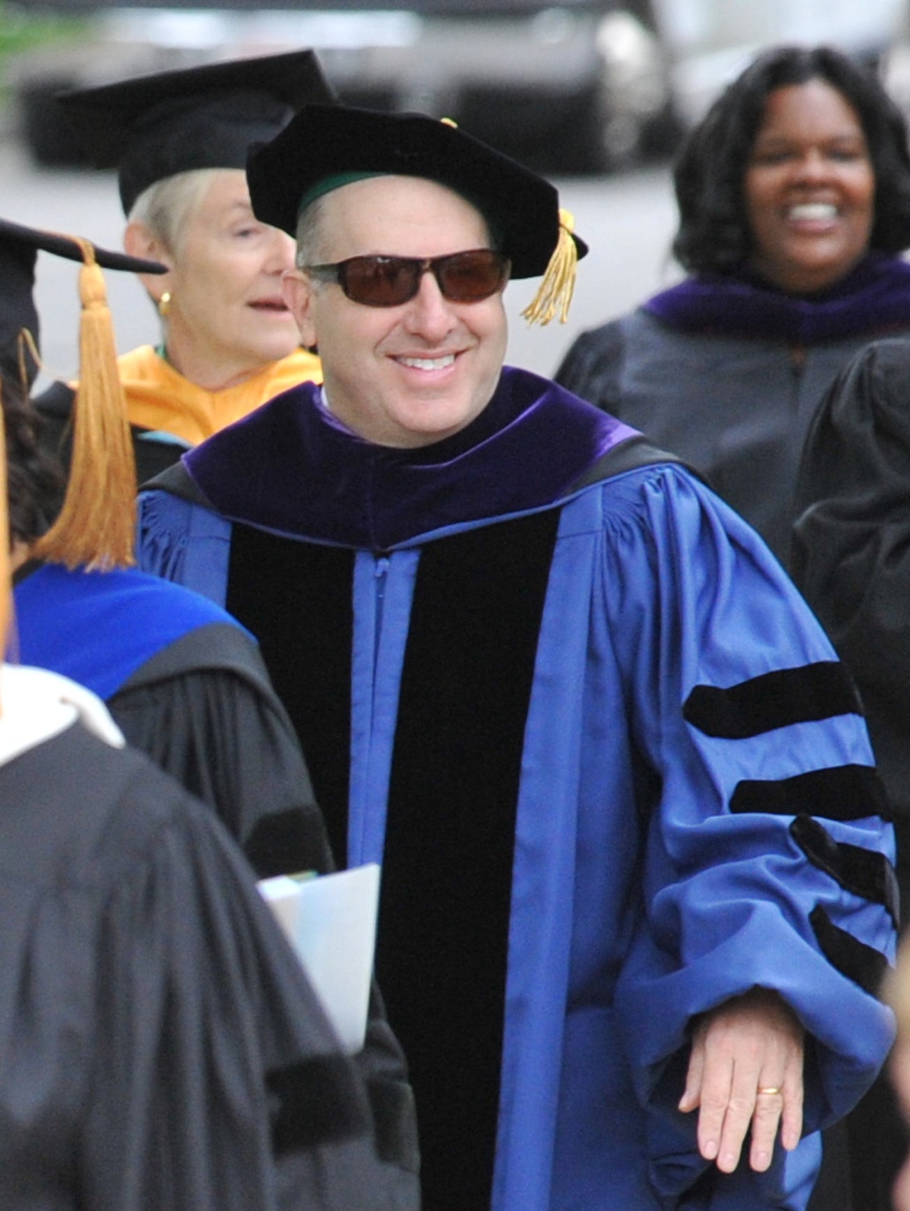 President Marvin Krislov in the academic procession at the start of Commencement Exercises, when the temperature was chilly but the skies were dry.