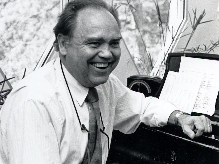 Emeritus Wheeler Professor of Singing Richard Miller in his studio at the Oberlin Conservatory of Music in Oberlin, Ohio. Circa 1978.
