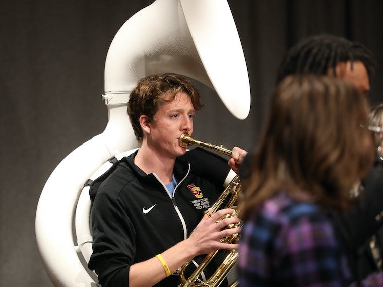 “From a shared commitment to excellence to the values of discipline and perseverance and the experience of performance, onstage or on the field, similarities between music and sports are many,” says Dean of the Conservatory William Quillen. “Sharing Stages is a moment to celebrate our well-rounded student athletes, in both the conservatory and the college. Through collaboration and artistry, they create new points of discovery and foster connections across our tight-knit campus community.”
