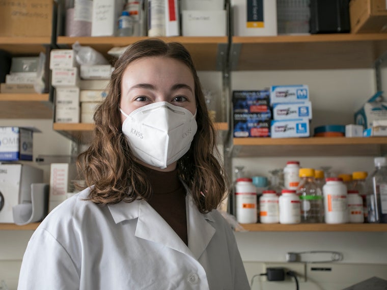 Ella Halbert '23 at work in professor Mary Garvin's biology lab.