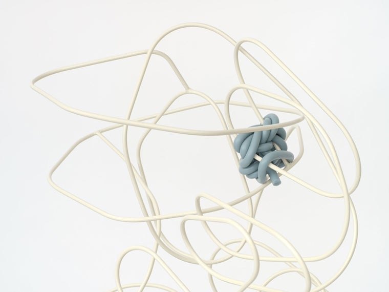 Yellin’s sculptures and paintings often take on these heady subjects using an abstract visual language brought to life through materials like silicone, aluminum, fabric, and latex. Her artworks can carry a sense of tension: They are somehow both soft yet sharp, both alien yet familiar, industrial with bodily echoes.