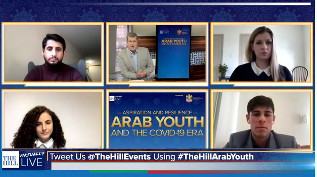 Fourth-year Marah Ajilat, seen bottom left, participates in a panel discussion hosted by The Hill and the Embassy of the United Arab Emirates.
