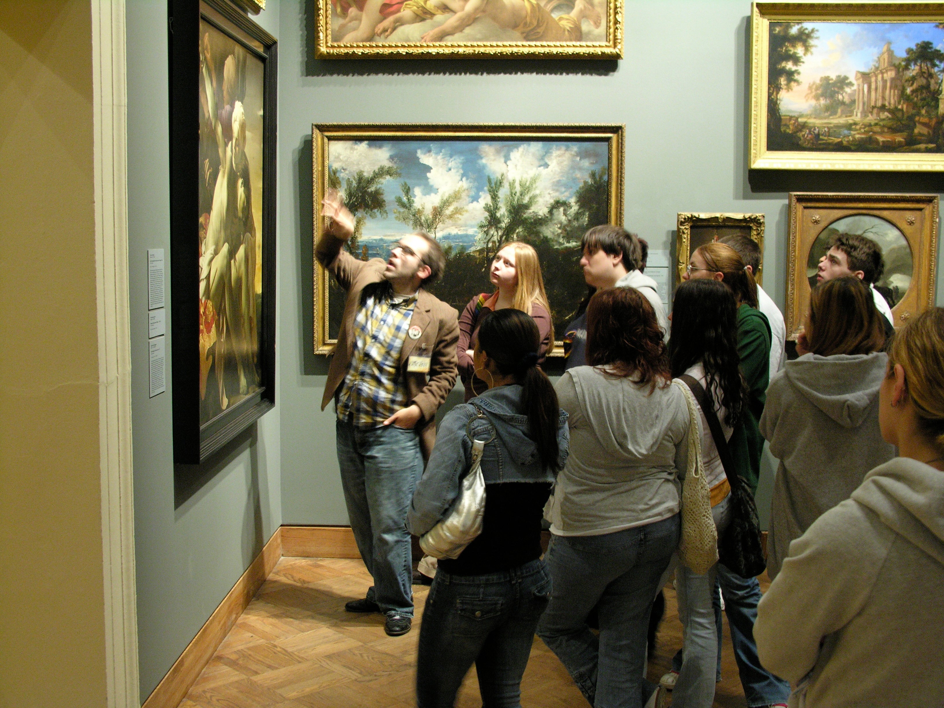 Based on a model he learned at the Art Institute of Chicago, Trimmer teaches the Oberlin students to use Visual Thinking Strategies (VTS) when touring. Docents pose open-ended questions, emphasizing the visitor’s critical analysis of the art. “Our docents don’t lecture,” Trimmer explained, “they lead discussions and try to create an engaging environment on works of art.”