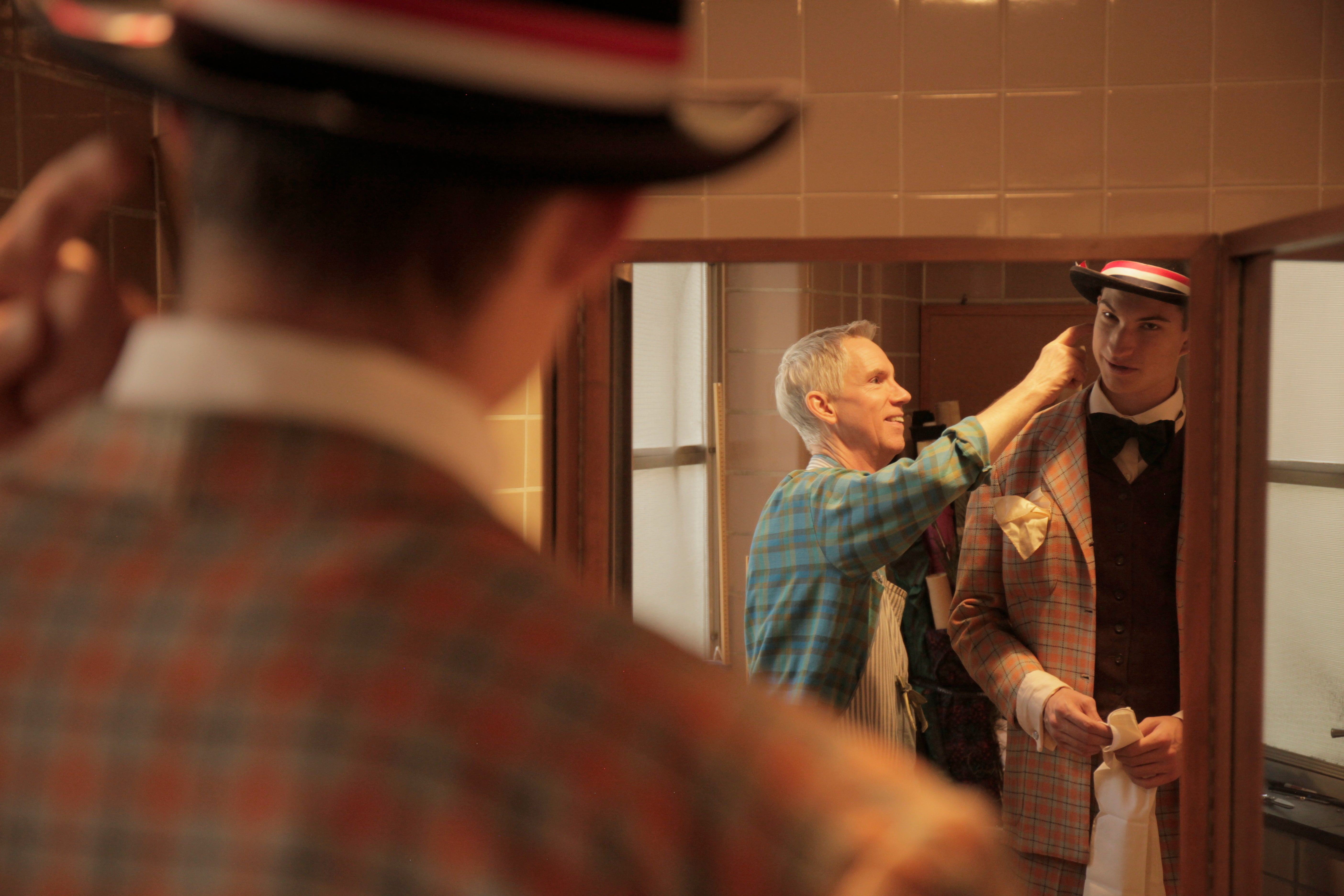 Costume Designer and Associate Professor of Theater Chris Flaharty fits sophomore Will Osborn, who plays Shrimp Man in Wedding Band, for his costume. A play by Alice Childress, Wedding Band tells the story of an African American woman and her white suitor as they deal with the prejudices of their fellow South Carolinians in early 20th-century America. See performances of Wedding Band directed by Assistant Professor of Theater Justin Emeka ’95 on October 1, 2, and 3 at 7:30 p.m. and October 4 at 2 p.m. in Hall Auditorium.
