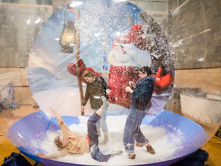 Oberlin’s Winter Term takes many forms. An ever-growing catalog offers faculty- and staff-led group projects, both domestically and abroad. Students are also free to design individual projects. For those who choose to stay on campus, Oberlin offers a robust calendar of social events for the month of January that includes planned activities, outings, and excursions, so those who choose to stay in Oberlin can easily engage with the community and build connections with fellow students. The on-campus experience culminates in a symposium-style festival of ideas, a Winter Term ball, and a winter-themed carnival.