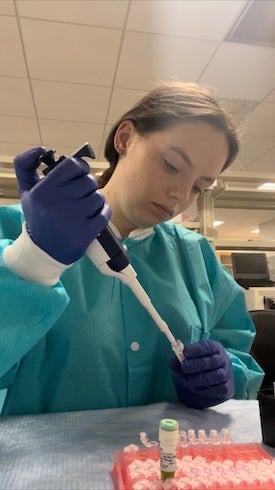 Zoey Olson Brown ’25 at her internship at Vitalant Research Institute in San Francisco, CA.