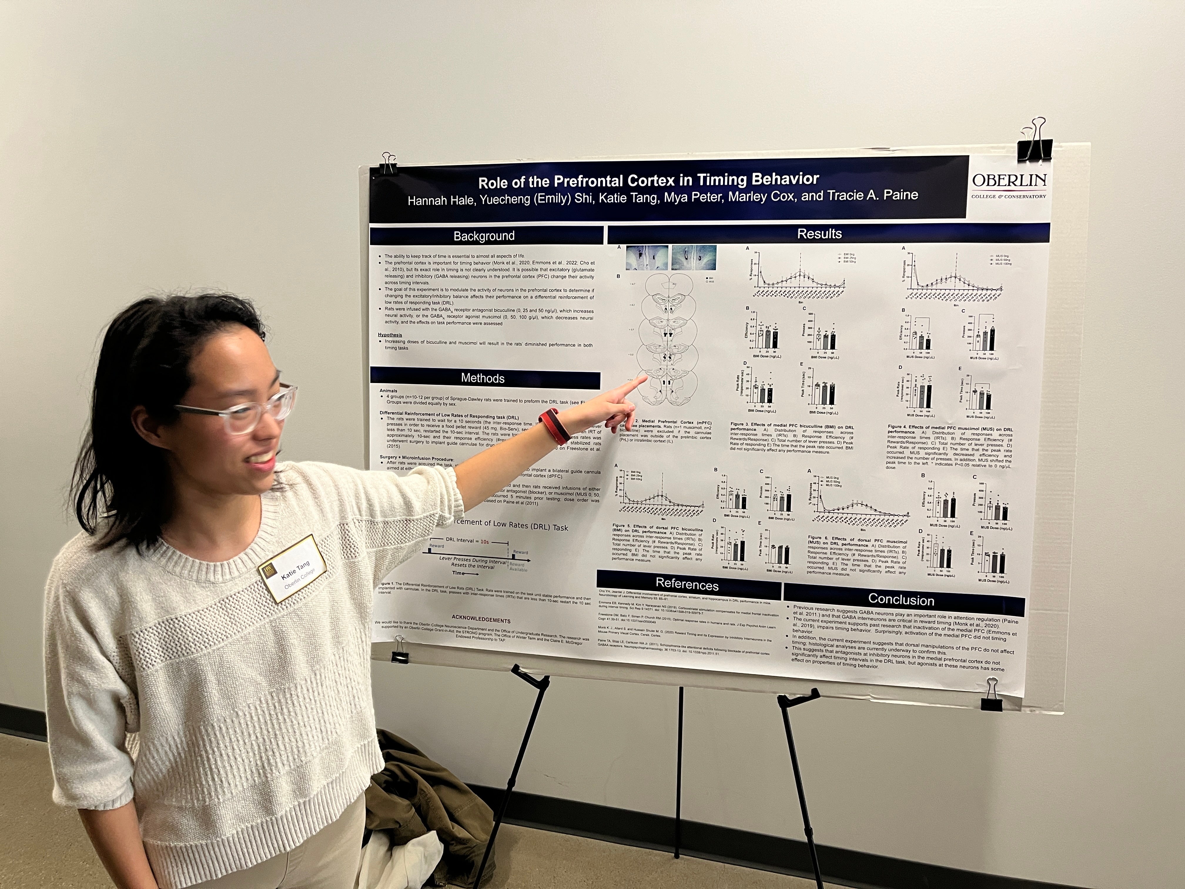 I presented my research work at the Midwest & Great Lakes Undergraduate Research Symposium in Neuroscience (mGluRs) and Oberlin College Research Symposium. These opportunities have strengthened my experience as a researcher because it allows me to share our experimental question, process, and findings to a large community of curious students and faculty.